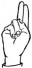 На ћирилици написано ШАЛЕ БОСИЋ састоји се из 9 слова [?]. Исписано ћириличном једноручном азбуком за глувонеме:
